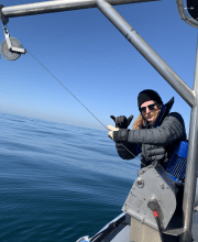 Ahoy! My name is Liam, a third-year student studying Atmospheric and Oceanic Science and Political Science at UCLA. I am interested in the biogeochemical processes that influence primary production in the Santa Monica Bay, exploring how climate change affects the planktonic foundation of our ocean’s ecosystem. As a part of MOPS, I have not only been able to gain amazing hand-on experience but have also found a community of similar ocean-loving individuals to share my passion. I love going on research cruises and seeing short-beaked common dolphins splashing in the wake of the Zodiac!